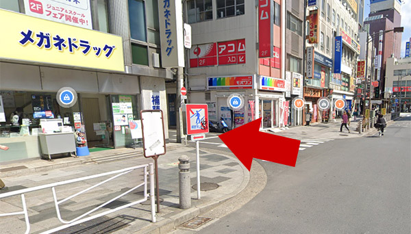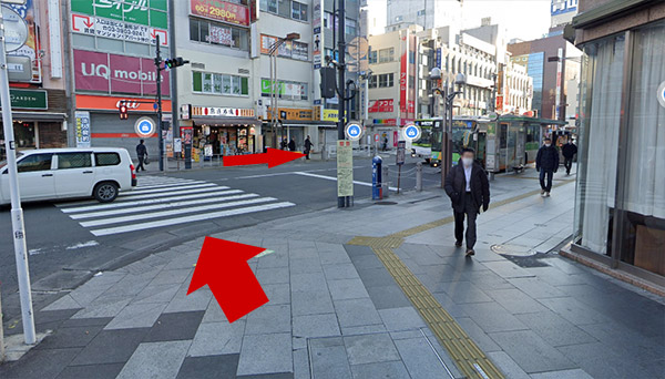 マツキヨの左の横断歩道を渡り、右に進みます。